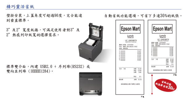 - 可調紙寬靈活設計,適用於58mm和80mm紙寬列印。